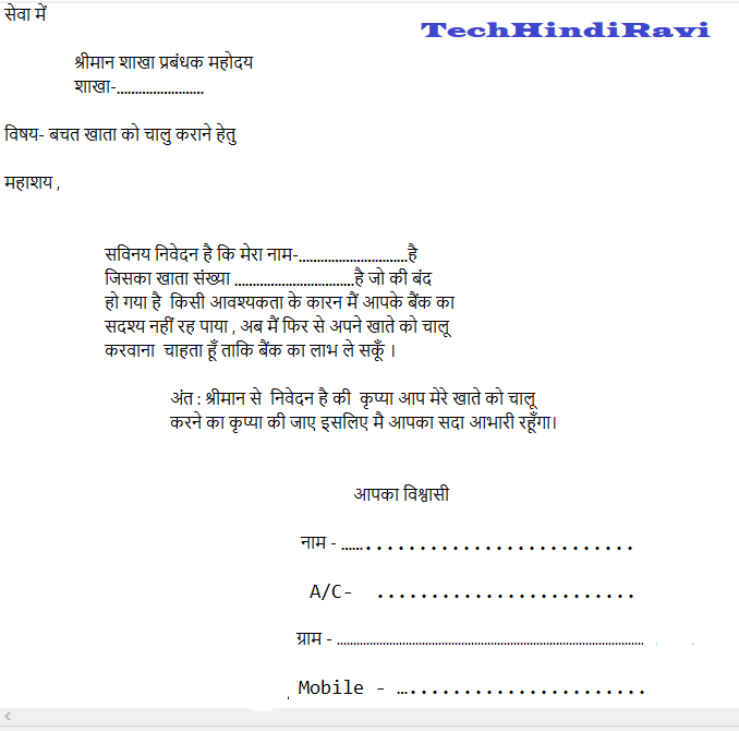 Application For Closing Bank Account In Hindi Sample Letter Format