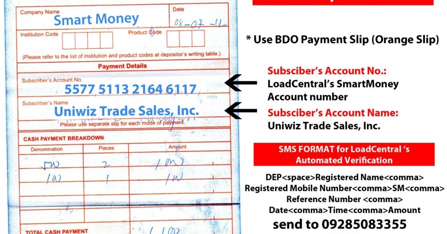 Eload Loadcentral Smart Money Transfer Via Bdo Payments For 24