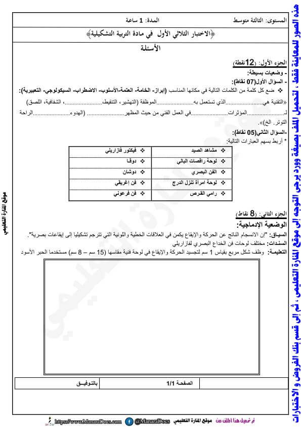اختبارات السنة الثالثة متوسط الجل الثاني الفصل الاول في التربية