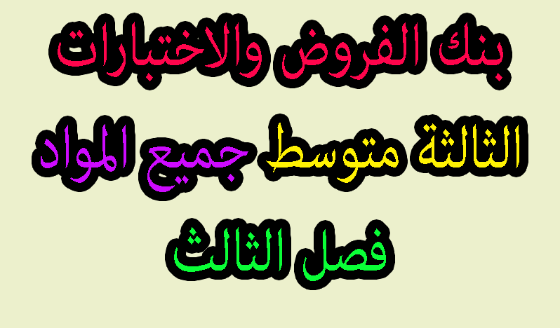 بنك الفروض والاختبارات الثالثة متوسط جميع المواد مع التصحيح فصل الثالث