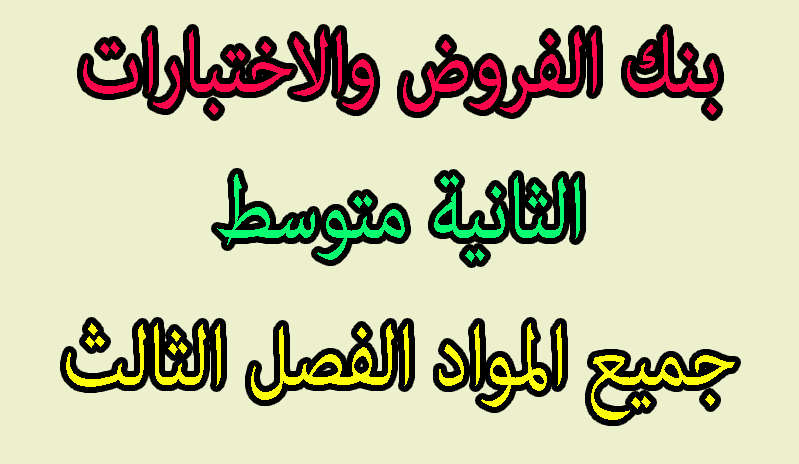 بنك الفروض والاختبارات الثانية متوسط جميع المواد الفصل الثالث