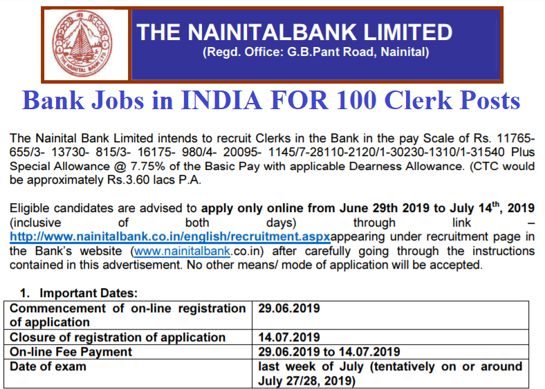 Nainital Bank Clerk Recruitment All Over India 2019 Bank Jobs